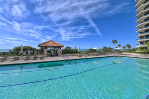 The Water Club stands as Longboat Key’s premier gated beachfront community, situated on 16 acres of meticulously landscaped grounds. Amenities include a 17,000-square-foot clubhouse, well-equipped fitness center and spa, heated lap pool and hot tub, four Har-Tru tennis courts, concierge services, and versatile gathering spaces such as a library, billiards room, ballroom, firepit, and grilling area. Additional conveniences include under-building parking, climate-controlled storage, on-site management, and 24-hour security.