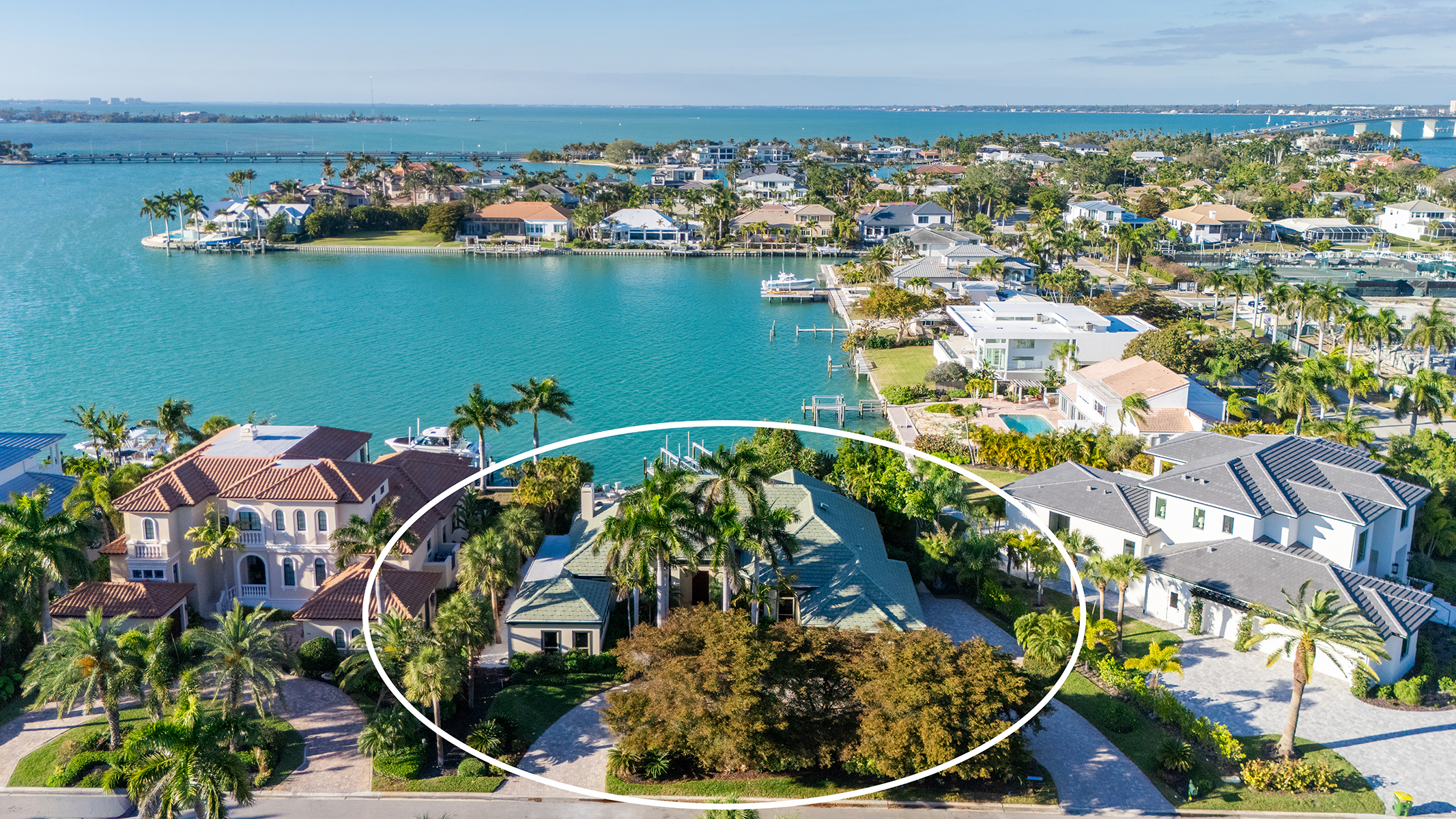 Experience serene waterfront living in this custom residence on Bird Key, one of Sarasota’s most prestigious island communities.