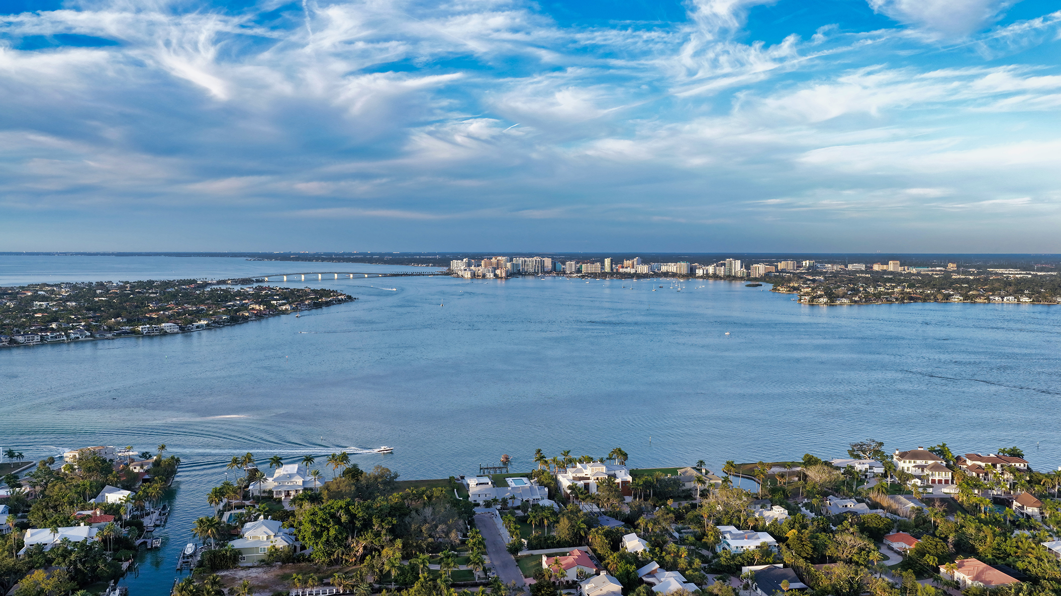 Owners will revel in the glistening Gulf of Mexico and Sarasota Bay waters, enjoy watching boaters gliding through Big Pass, and marvel at the plethora of marine life from every vantage point. These views are the perfect frame to savor the captivating sunsets over the Gulf, picturesque downtown Sarasota skyline and Bird Key, and pristine shifting sands of nearby sand bars.