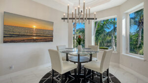 The residence also includes an air-conditioned five-car garage with epoxy floors, abundant storage, and a dedicated workshop – perfect for the car enthusiast. The private dock is equipped with a 16,000 lb lift, providing seamless access to Sarasota Bay, the Gulf of Mexico, and the Gulf Coast’s award-winning beaches.