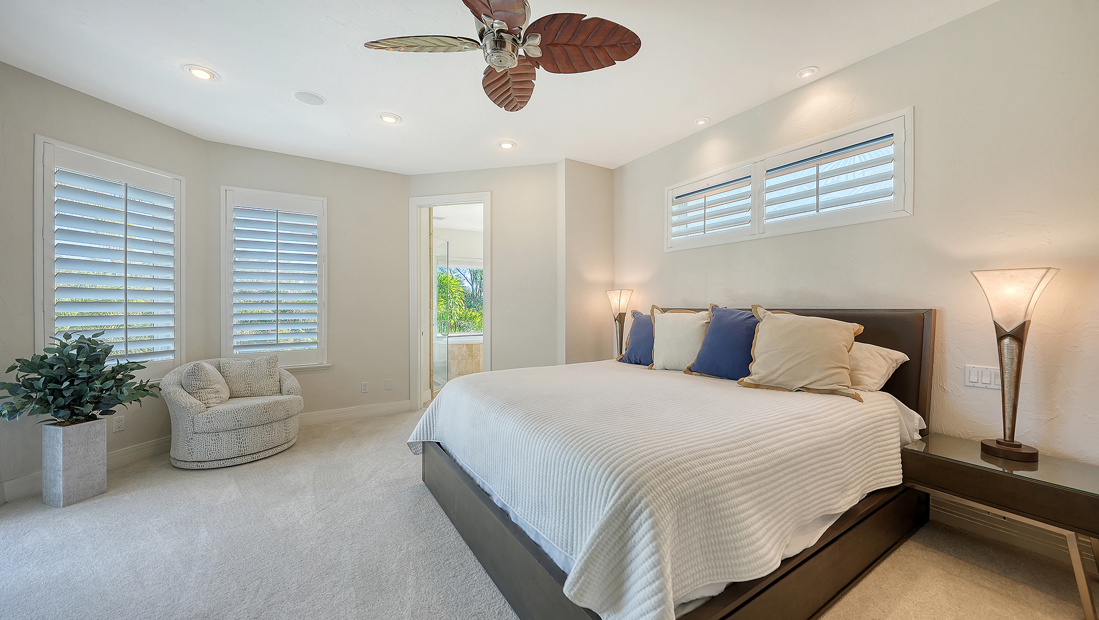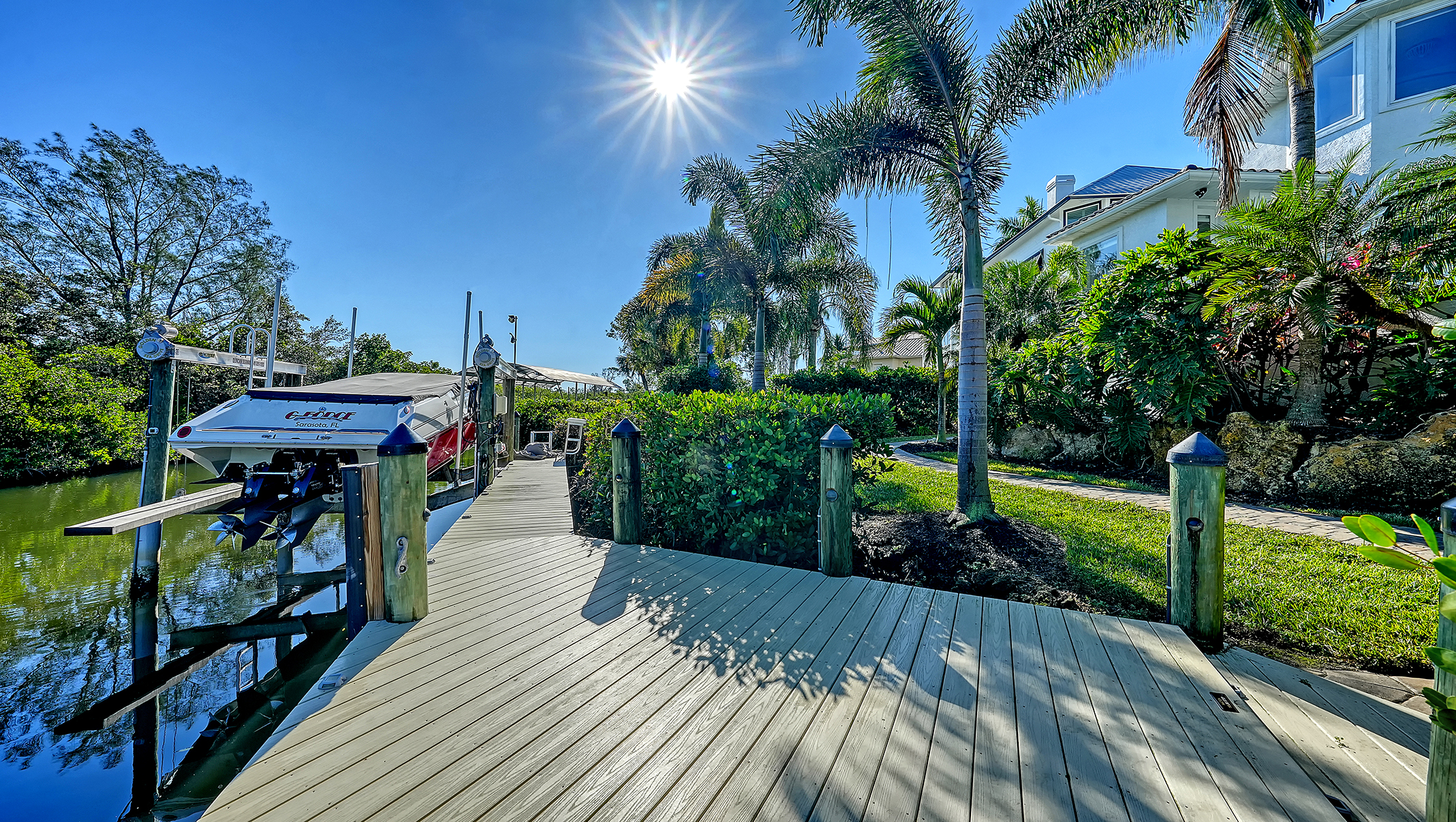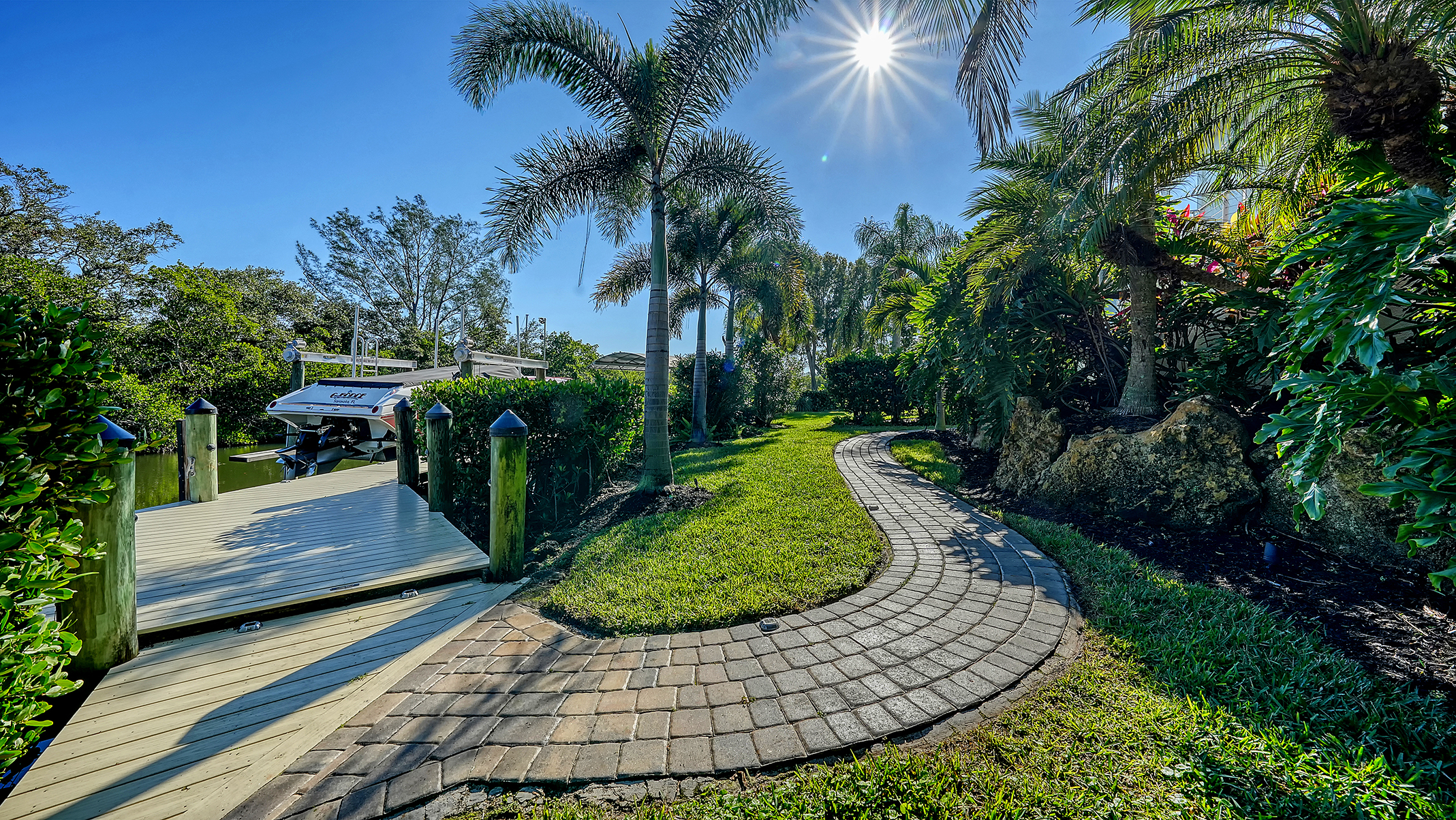 The home has been thoughtfully renovated, featuring a completely remodeled kitchen and bathrooms, new tile flooring, carpet, lighting, and hardware throughout. Plantation shutters and UV-tinted windows add comfort and energy efficiency. The garage has been upgraded with epoxy floors, LED lighting, and custom cabinetry. Dock and patio enhancements, resurfaced pool and spa with new tile, pump, and jets, new pavers, and over 30 low-voltage landscape lighting fixtures further elevate the property’s appeal.