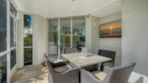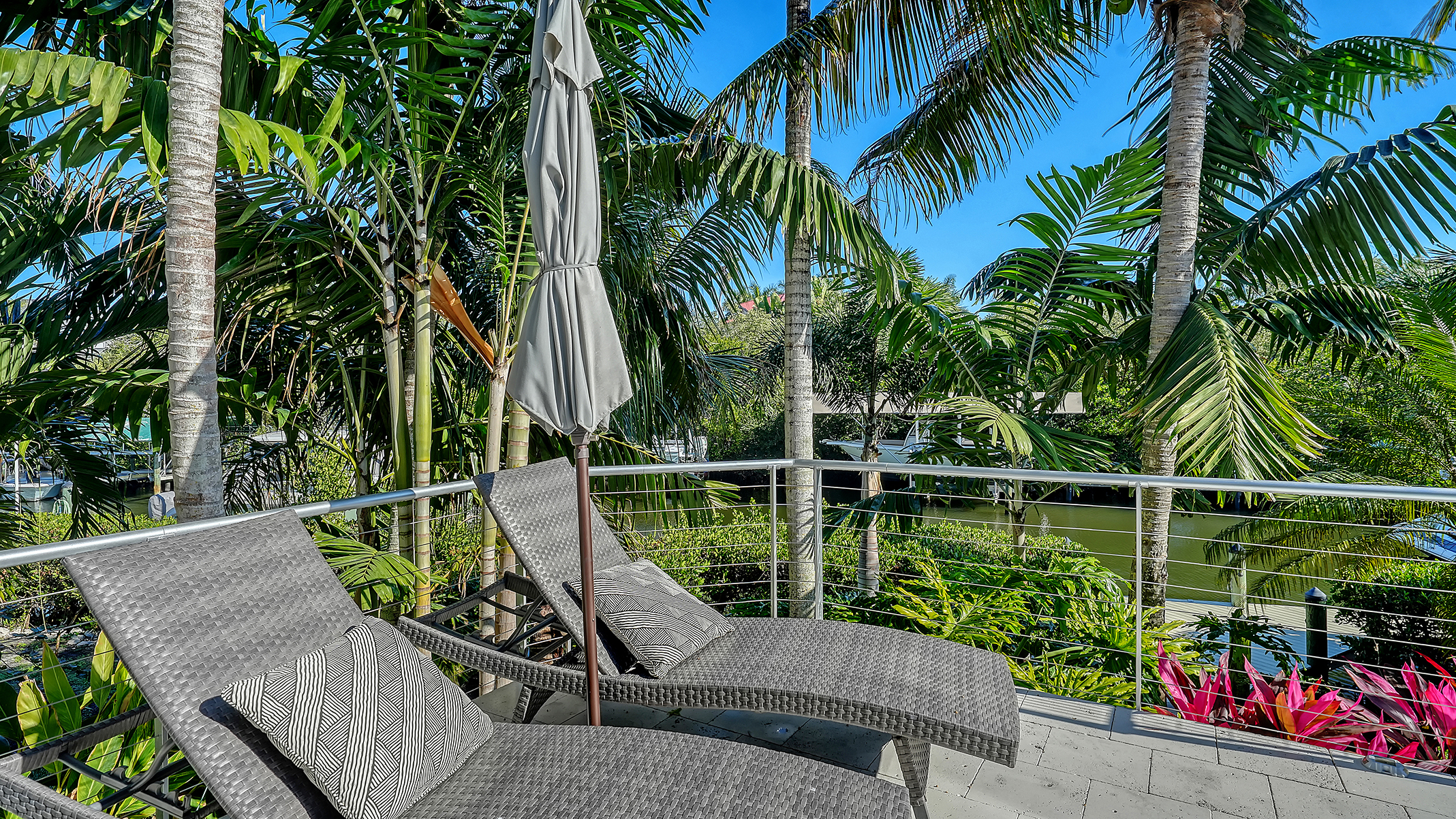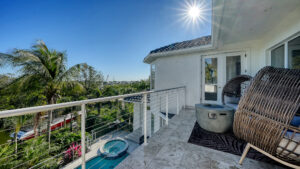 The main level includes a spacious primary suite and a second en-suite guest bedroom for optimal convenience. Upstairs, two additional en-suite bedrooms open onto a private 21-foot balcony, offering tranquil views and a perfect retreat for your guests.